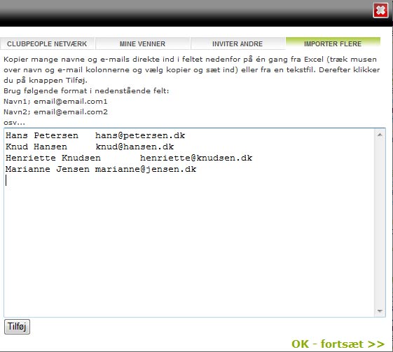4. Import more: This tab can also be used with an excel spreadsheet, consisting of a column of names and a column of email addresses. You can insert them all, and send all the invitations simultaneously. View the illustrations below: