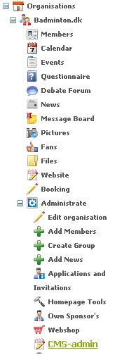 To get started with administrating and building your website with Club People's CMS, expand your organization, expand "Administration" where you'll find "CMS-admin".