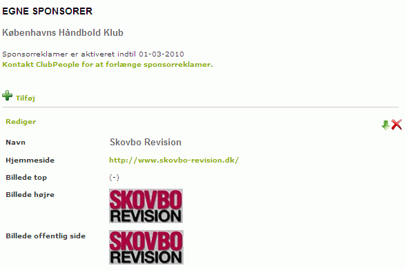 With this module you can also insert sponsor logos on your own website. This would enable you to manage the sponsor logos professionally on your own website, and your ClubPeople site, from one central place. This way all sponsor logos, pictures and links can be maintained from ClubPeople.