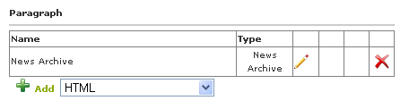 To add the News Archive to your paragraph, Select 'News Archive' option in the paragraph