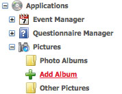 This is done using the menu on the left, and by clicking "Applications", "Pictures" and then "Add Album":